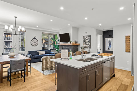Cozy Ambiance: A gas fireplace in the living room provides a warm, inviting atmosphere, perfect for relaxing after a day of adventure.